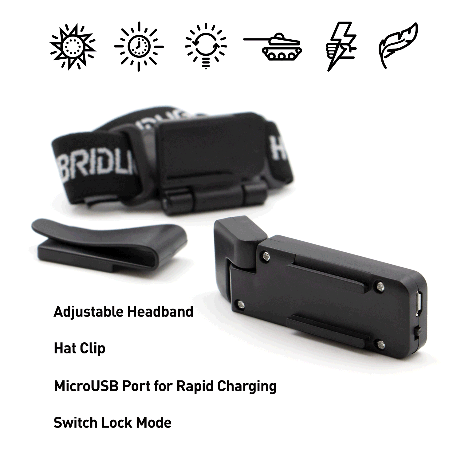 The NAV is our versatile Headlamp that comes with both a comfortable Headband, and a Hat Clip that slides snug on your hat.